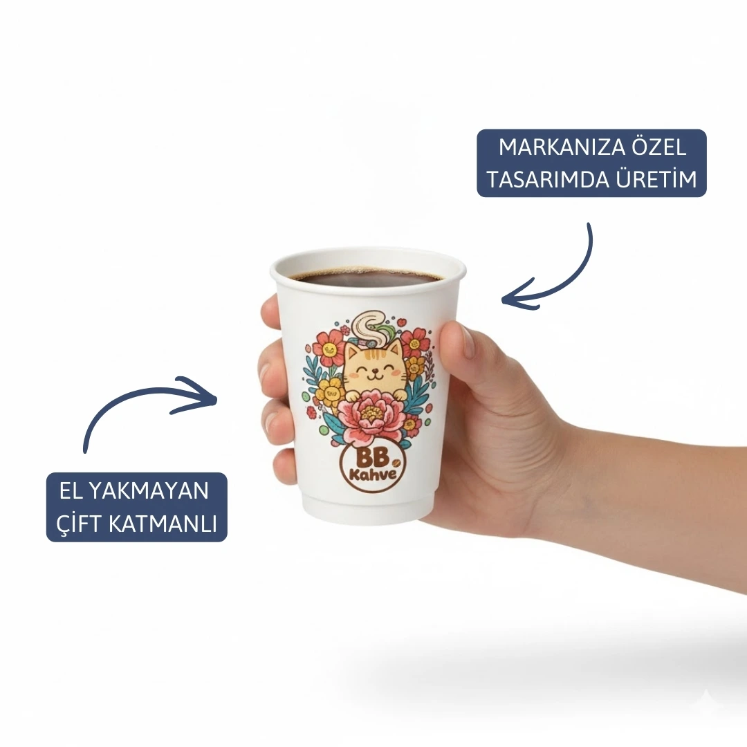 Firma Logolu Double Wall Karton Bardak – El Yakmayan Baskılı Üretim