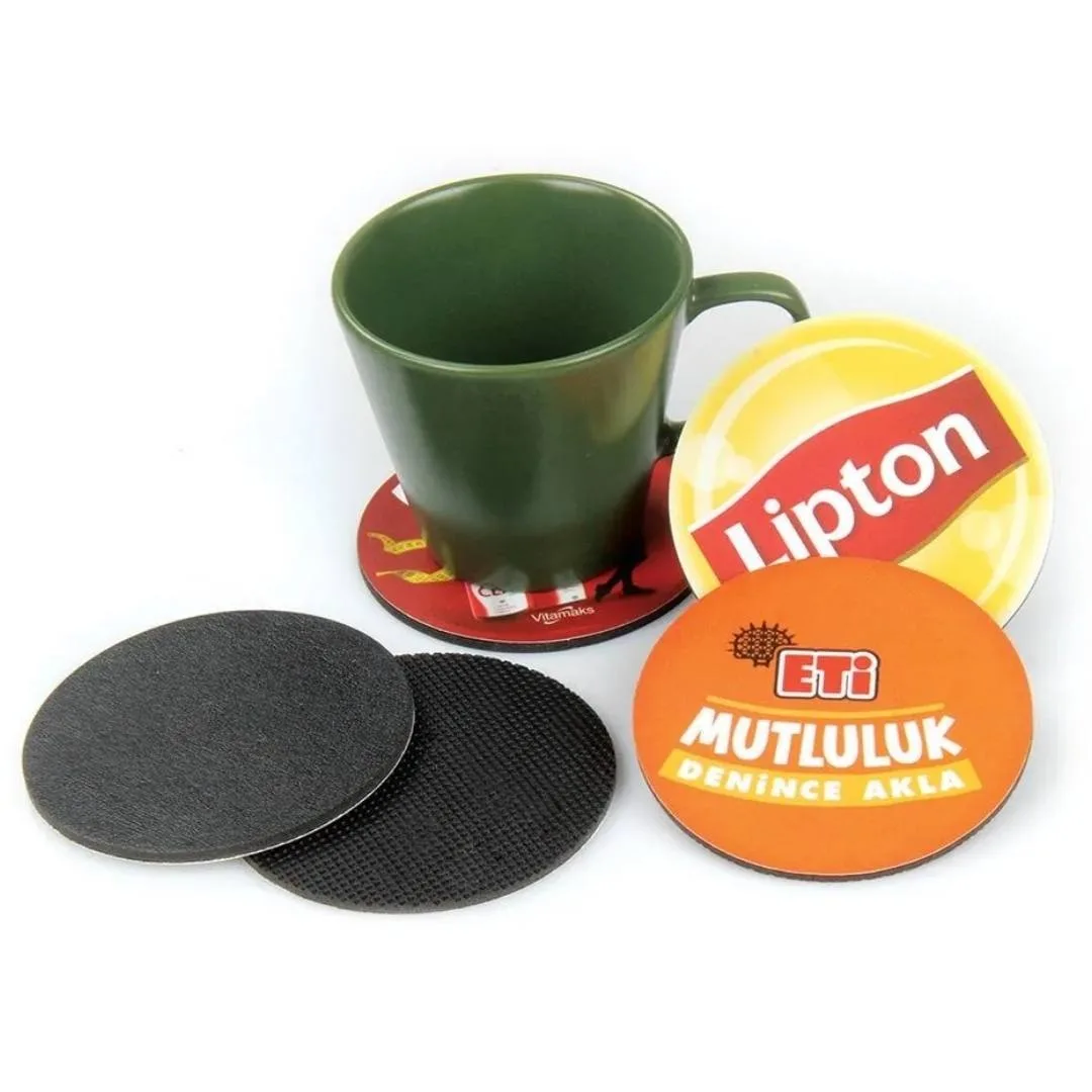 Kauçuk tabanlı promosyon bardak altlığı, masa üzerinde kaymayı önleyen dayanıklı yapısı ve