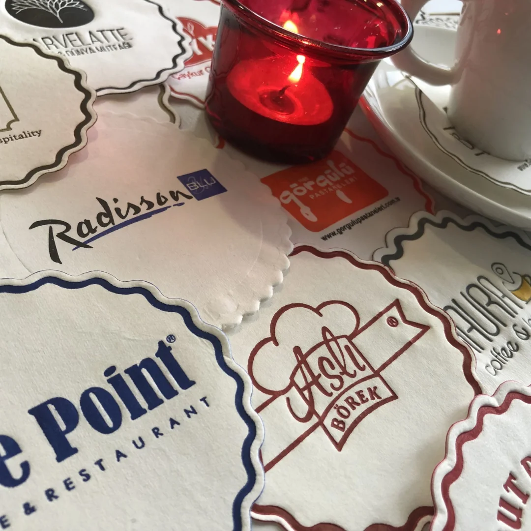 Firma logolu kağıt bardak altlığı, müşterinizin masasında sürekli görünür olarak markanızı hatırlatan güçlü bir reklam aracıdır. Özellikle kafe, restoran ve otellerde her servisle birlikte markanızın tekrar tekrar görünmesini sağlar.