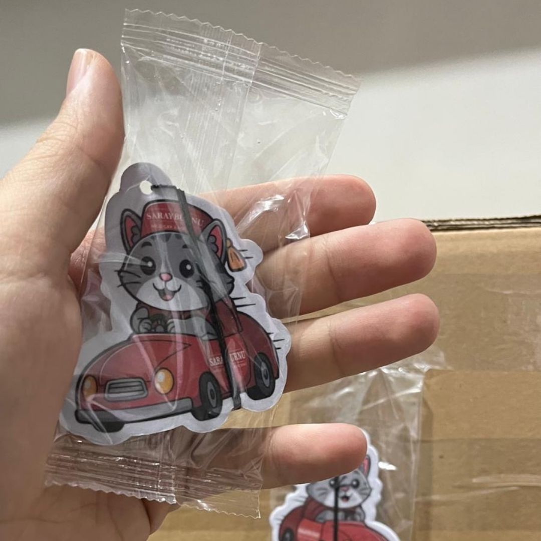 Özel üretim oto kokusu siparişlerinde ön ve arka yüzeye farklı tasarım basılabilir; bu sayede markanızın logosu, kampanya görseli veya iletişim bilgisi her iki yüzde de yer alabilir.
